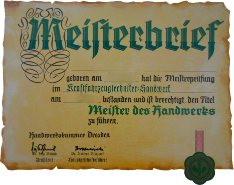 Die Weiterbildung zum Meister stellt die nächste Karrierestufe im Kfz-Techniker-Handwerk dar. Die Qualifikation zum Kfz-Meister ermöglicht dabei nicht nur die Selbstständigkeit und somit die Chance einen eigenen Betrieb zu führen. Die Ausbildung stellt zudem ein renommiertes Gütesiegel für das eigene Unternehmen dar, befähigt den eigenen Nachwuchs auszubilden und ebnet bundesweit den Weg an Universitäten, Hochschulen oder Fachhochschulen.